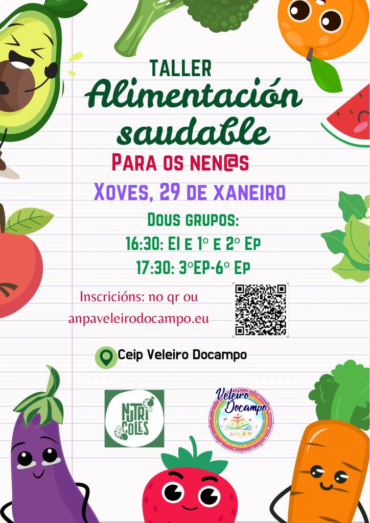 O taller será impartido por Nutricoles, o xoves 29 de xaneiro, en dous grupos, ás 16:30 e 17:30, en función da idade do/a neno/a.